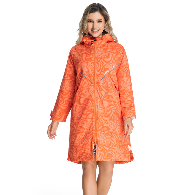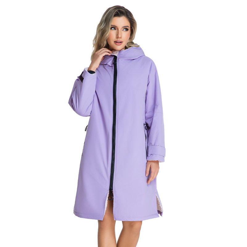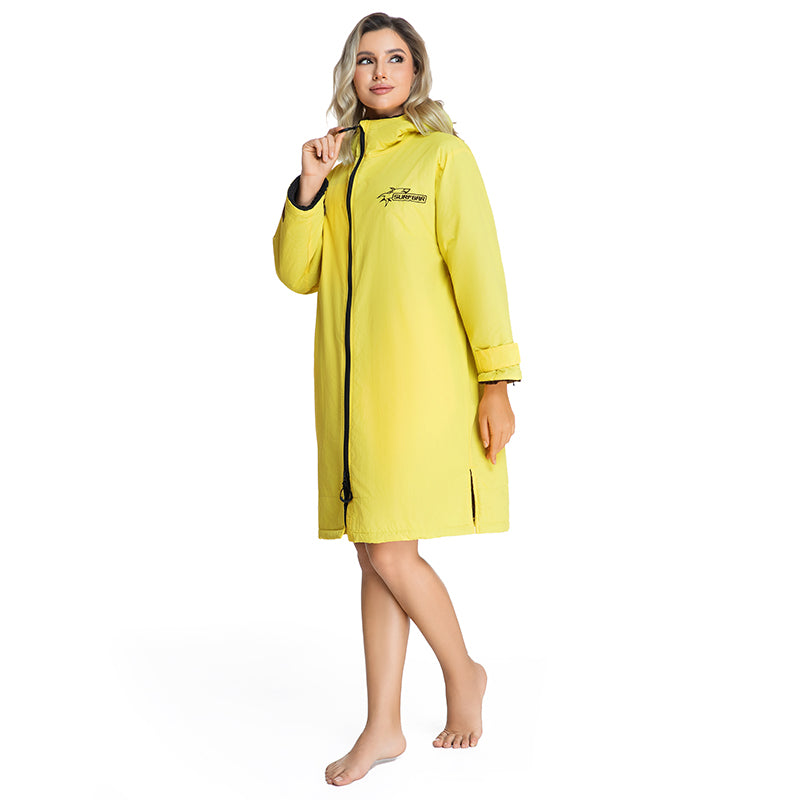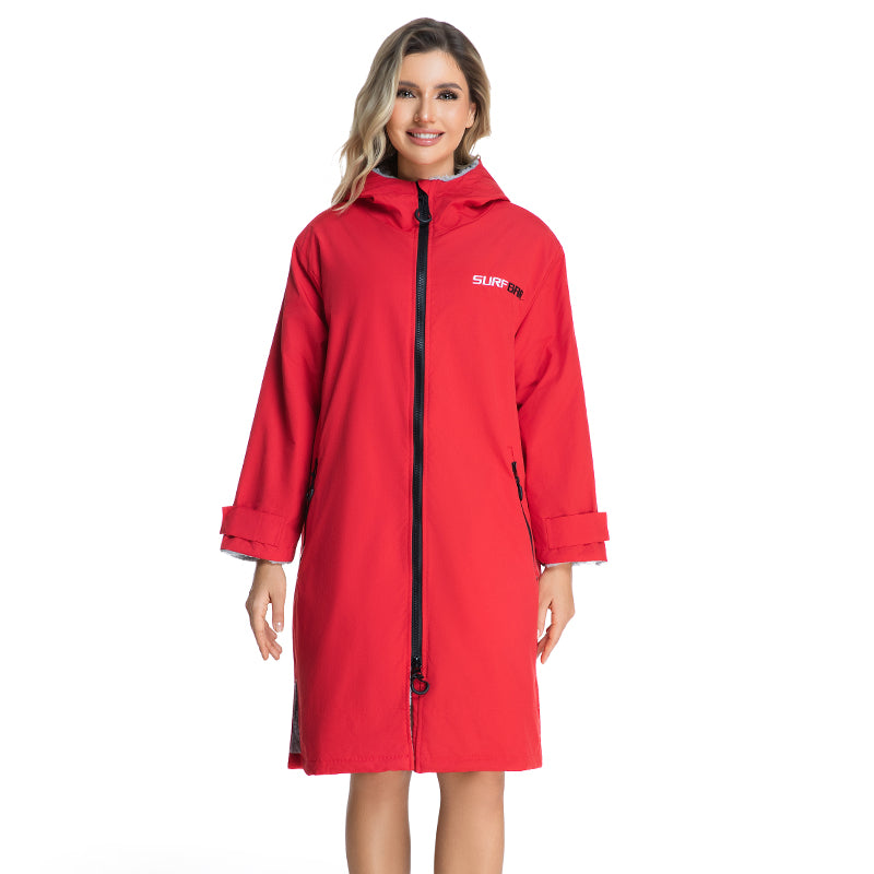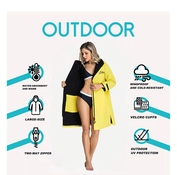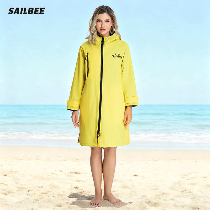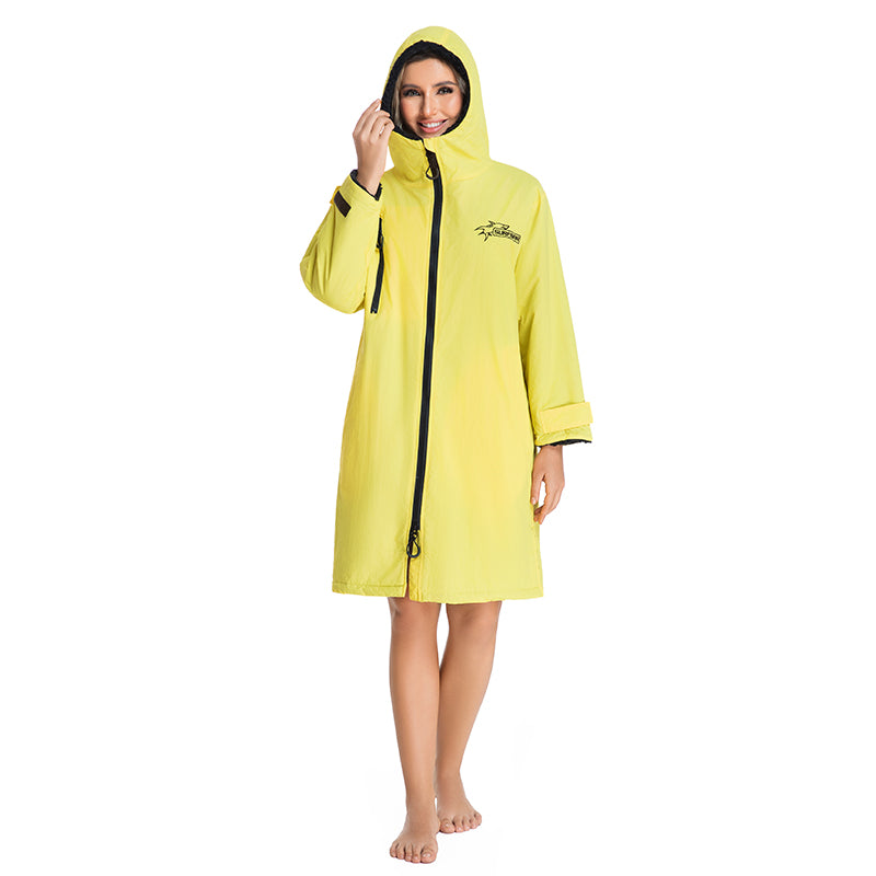 - Watersports women men double layer quick drying change robe jacket hooded poncho parka coat windbreaker with long sleeves and hood.