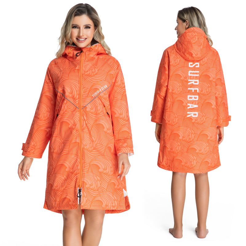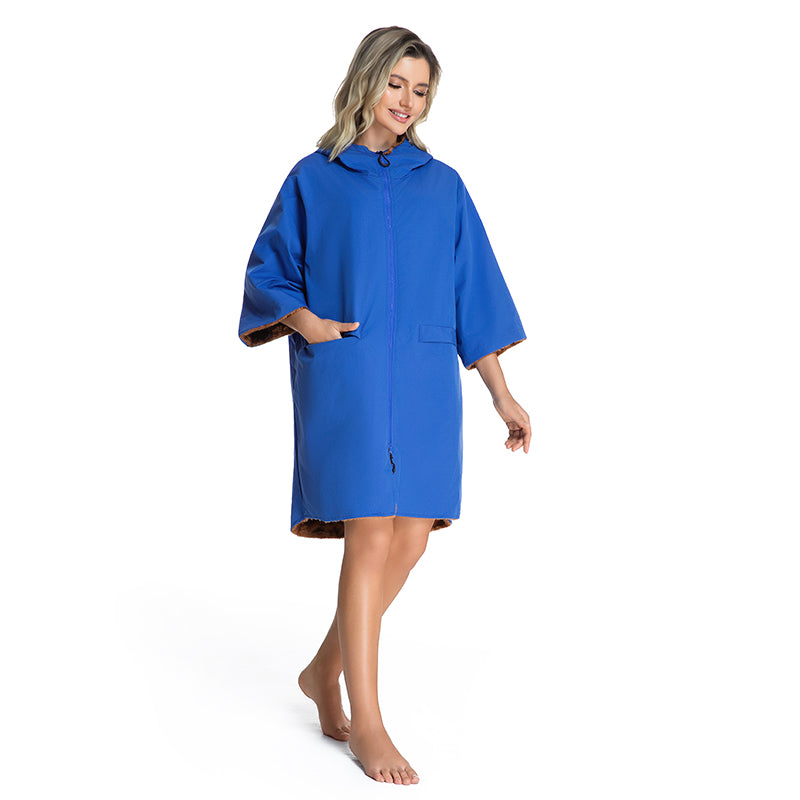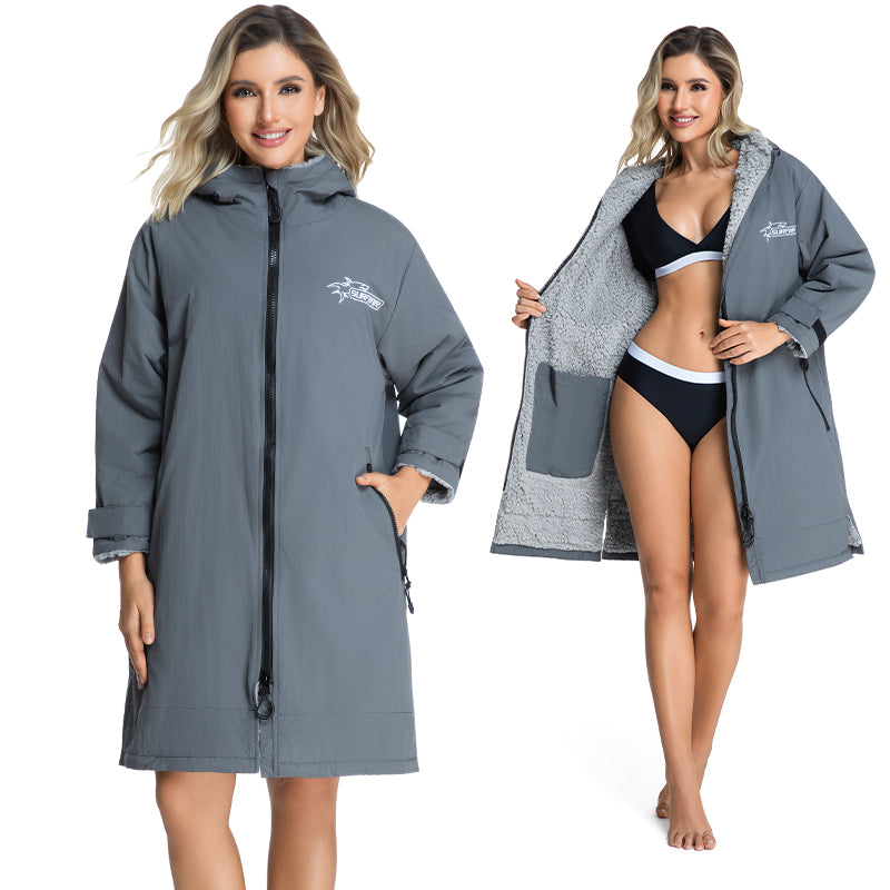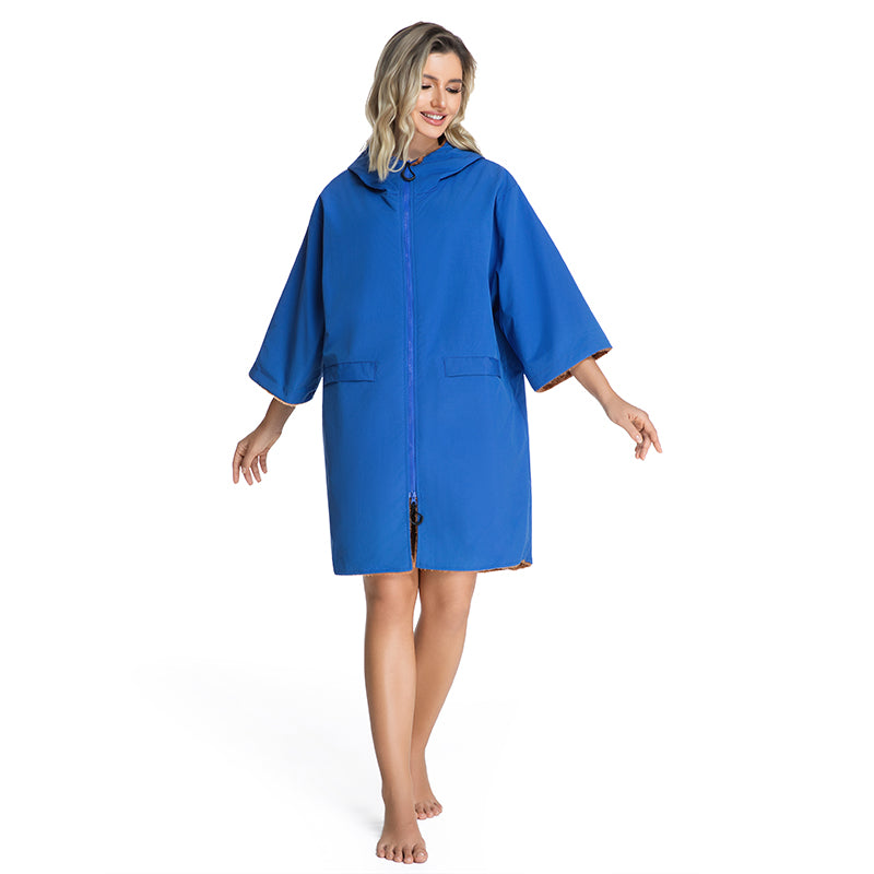 - Watersports women men double layer quick drying change robe jacket hooded poncho parka coat windbreaker with long sleeves and hood.