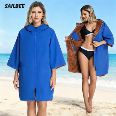 Waterproof Surf Changing Robe Outdoor Coat Lamb Wool Jacket Hooded Cloak Beach Surfing Pool Lining Anorak Raincoat Unisex Bath