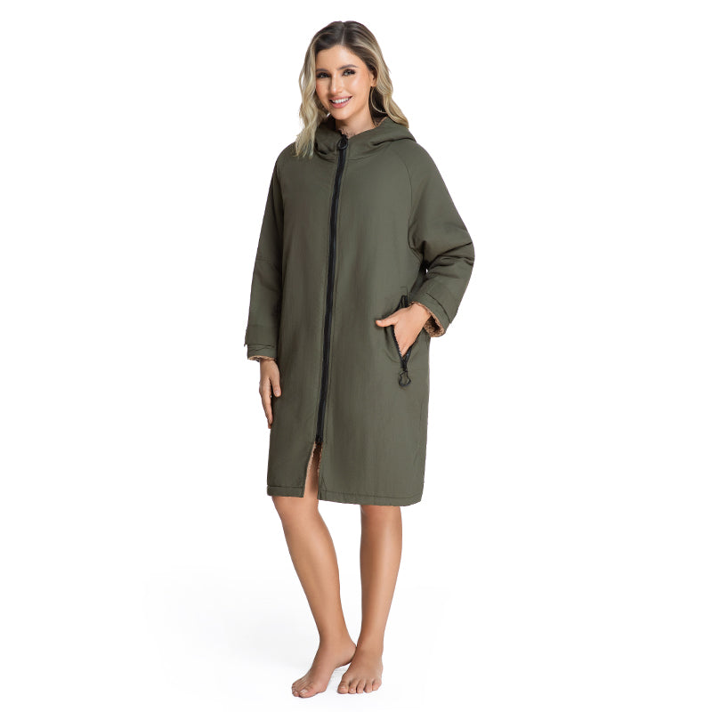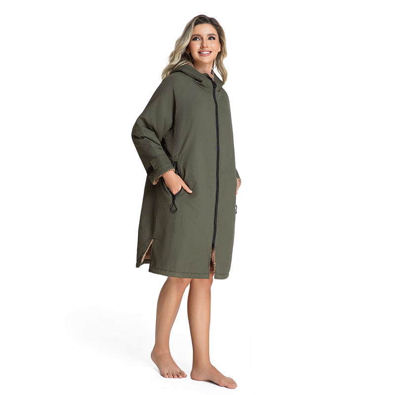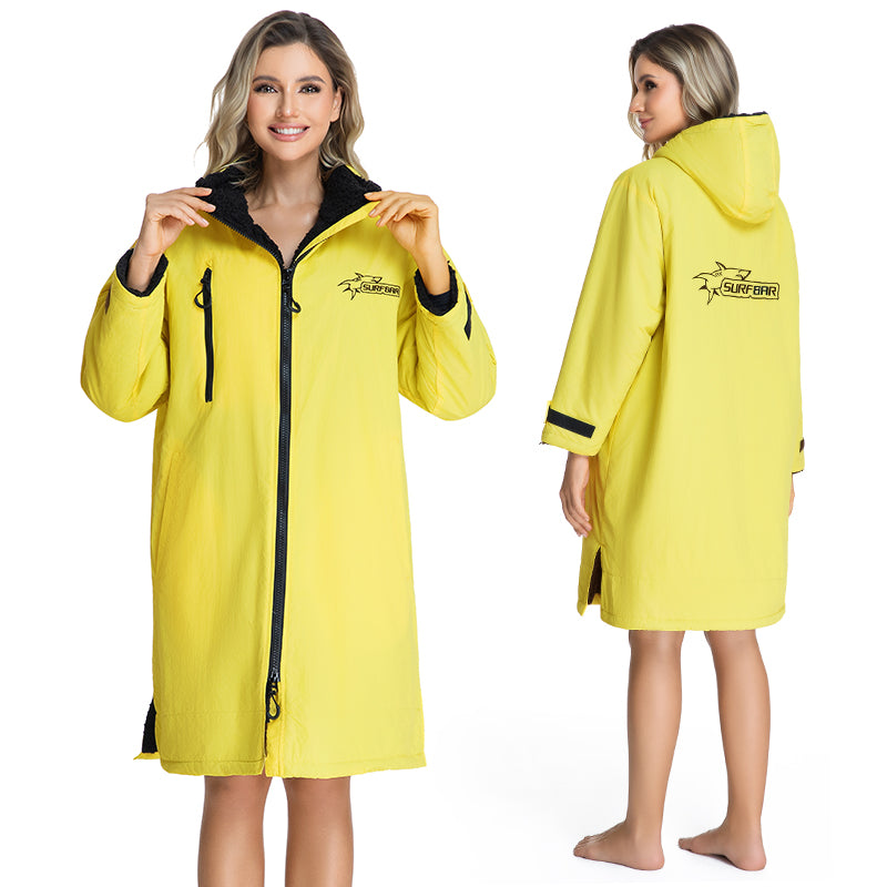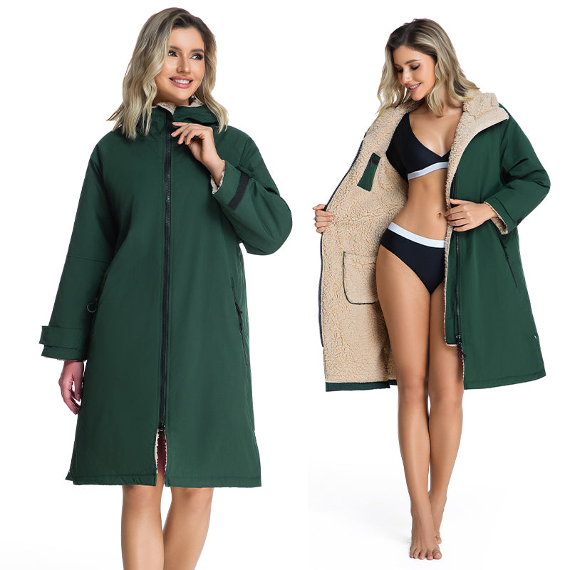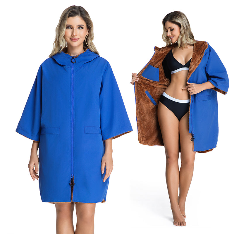 - Watersports women men double layer quick drying change robe jacket hooded poncho parka coat windbreaker with long sleeves and hood.